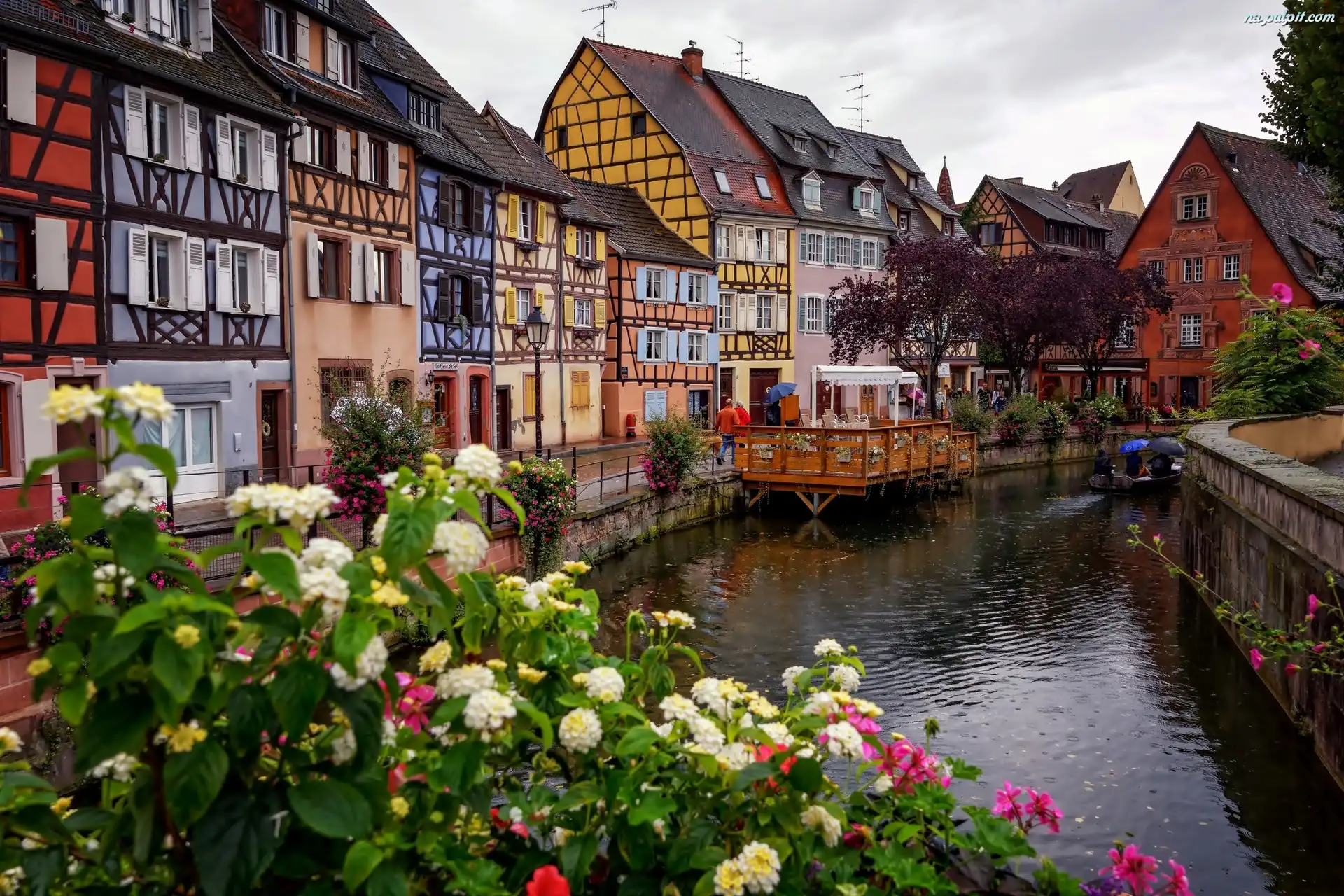 Francja, Rzeka, Domy, Kwiaty Na Pulpit