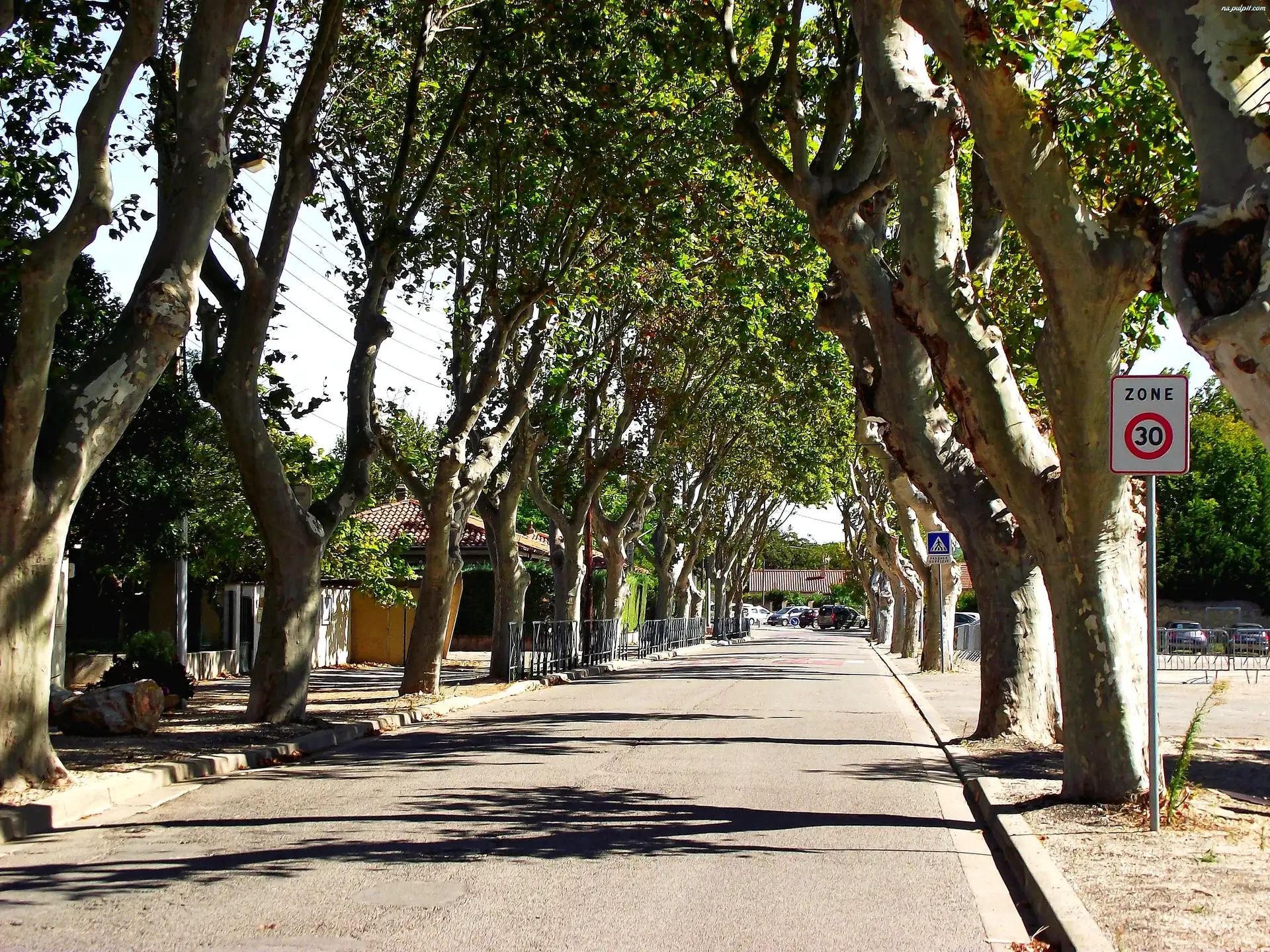 Francja, Drzewa, Droga, Platany Na Pulpit