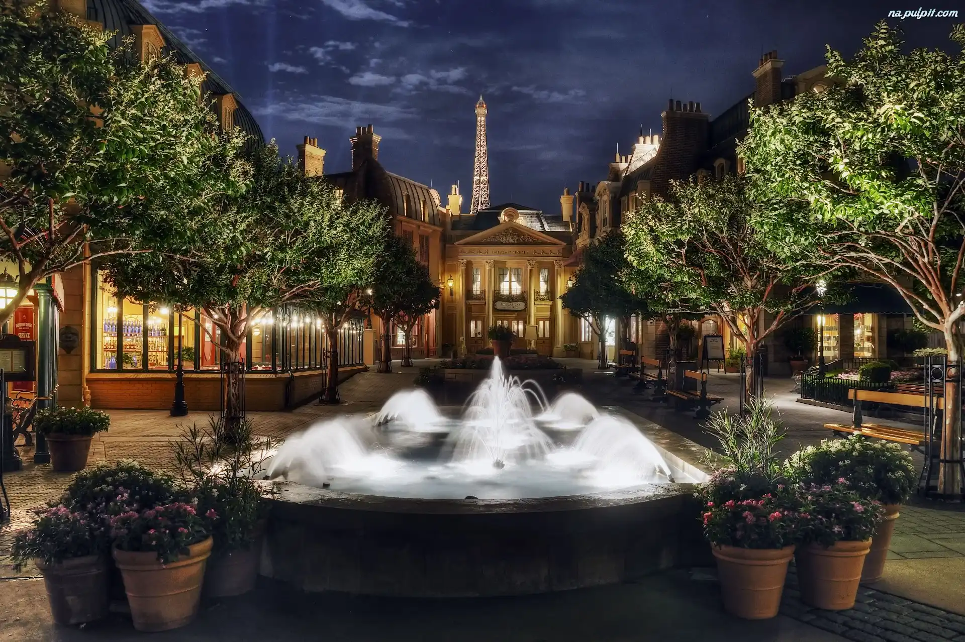 Francja, Fontanna, Hotel, Drzewa Na Pulpit