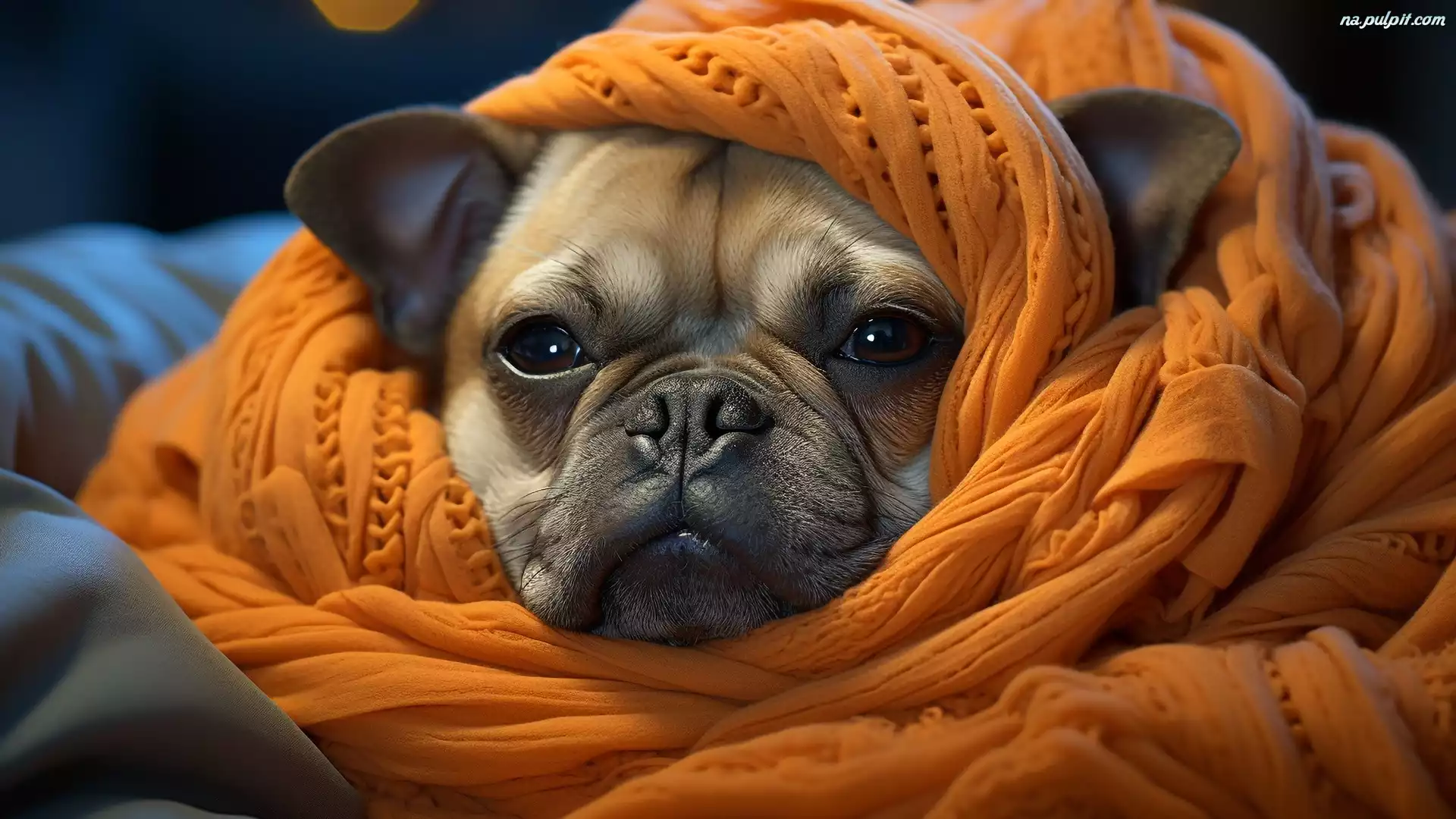 Szal, Pies, Buldog francuski, Al, Pomarańczowy Na Pulpit