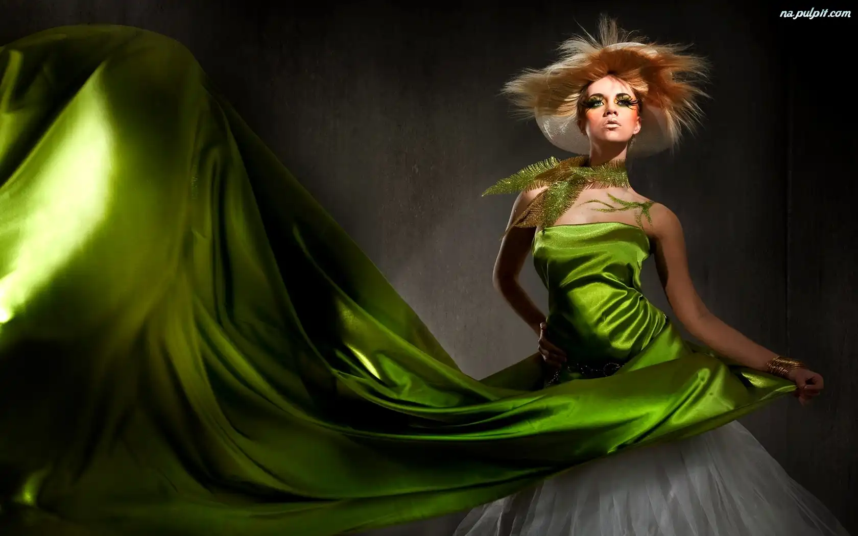 Fryzura, Zielona, Kobieta, Suknia