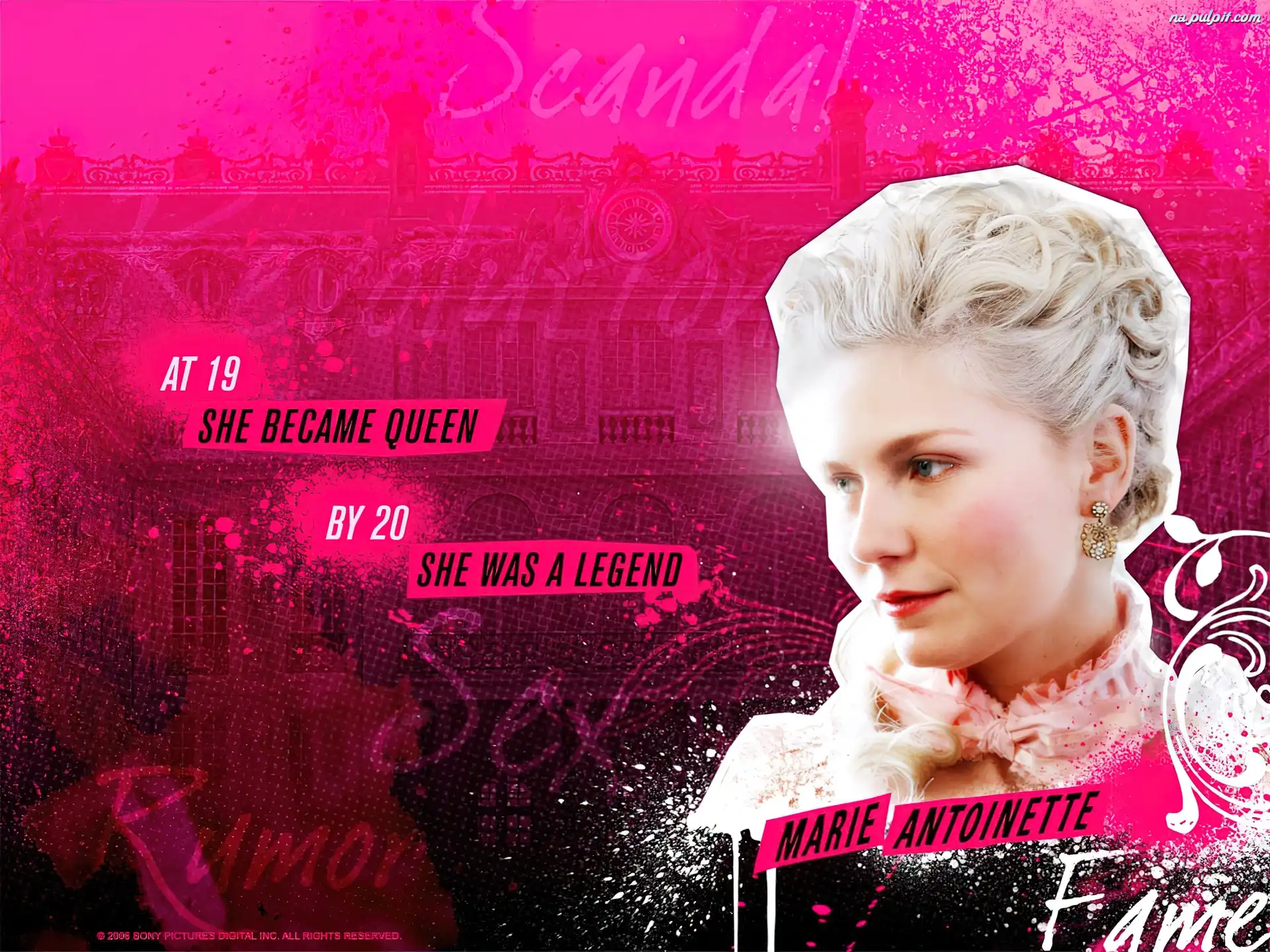 tło, fryzura, Kirsten Dunst, Marie Antoinette, różowe Na Pulpit