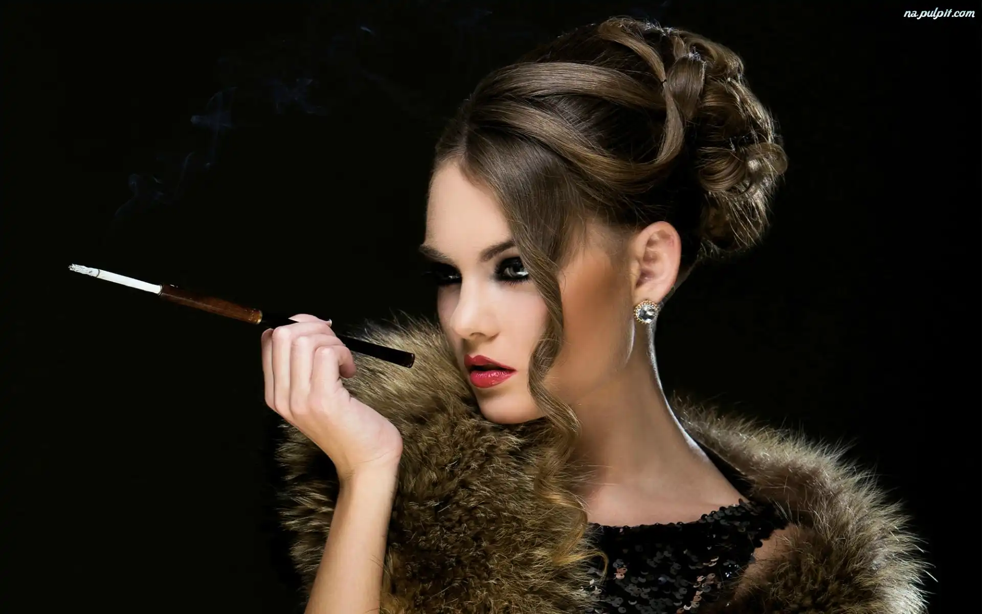 Futro, Makijaż, Retro, Kobieta, Biżuteria Na Pulpit