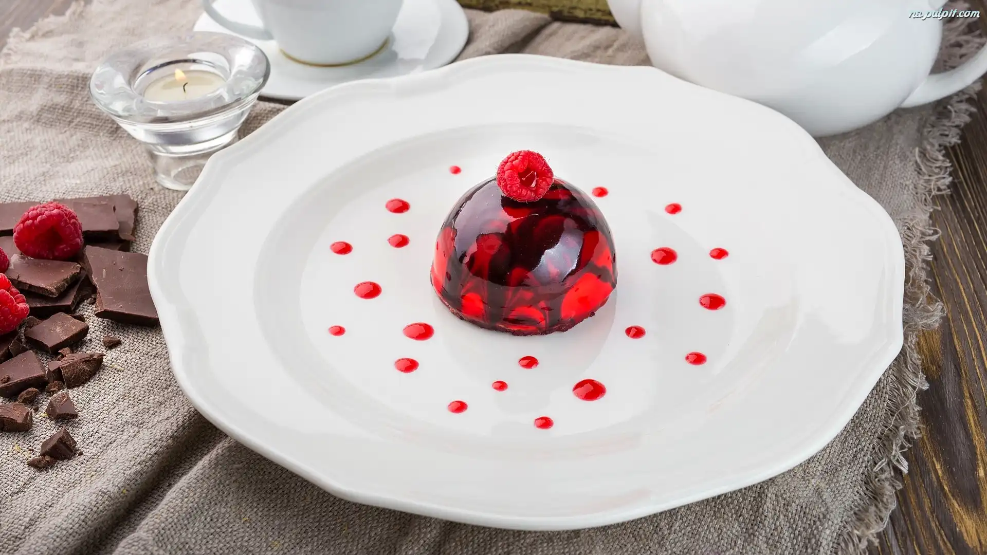 Galaretka, Pokruszona, Czekolada, Talerz, Deser, Maliny Na Pulpit