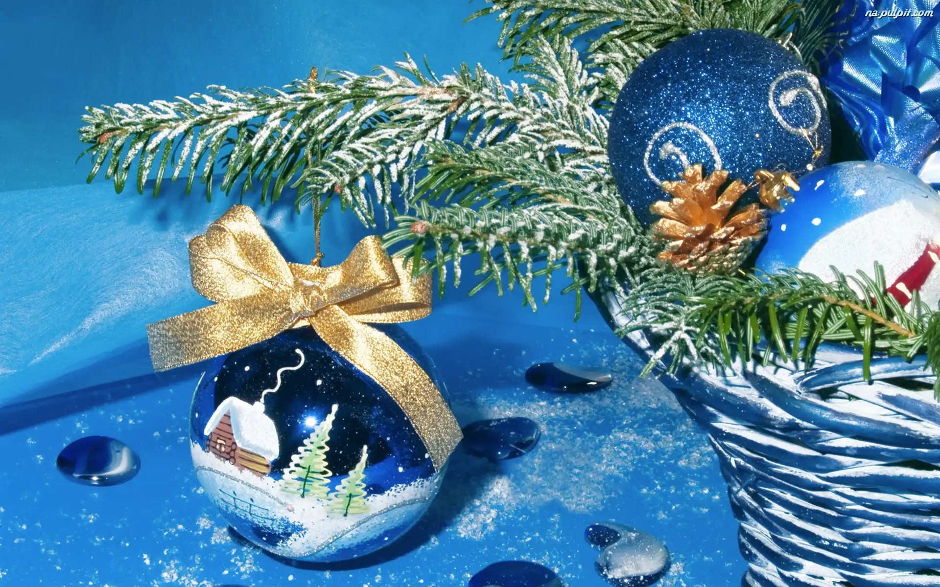 Gałąź, Bombki, Świąteczna, Dekoracja, Kosz