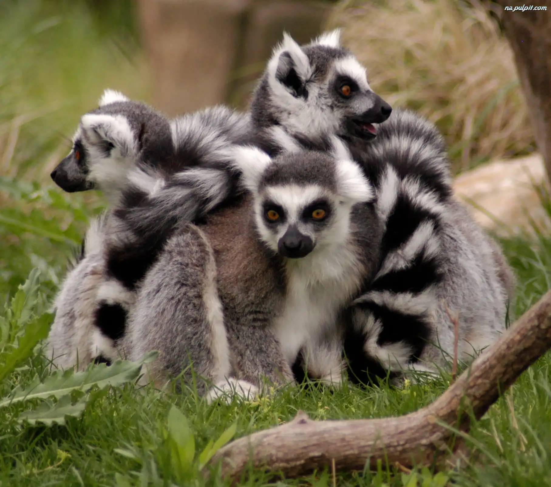 Gałąź, Lemury katta, Trawa Na Pulpit