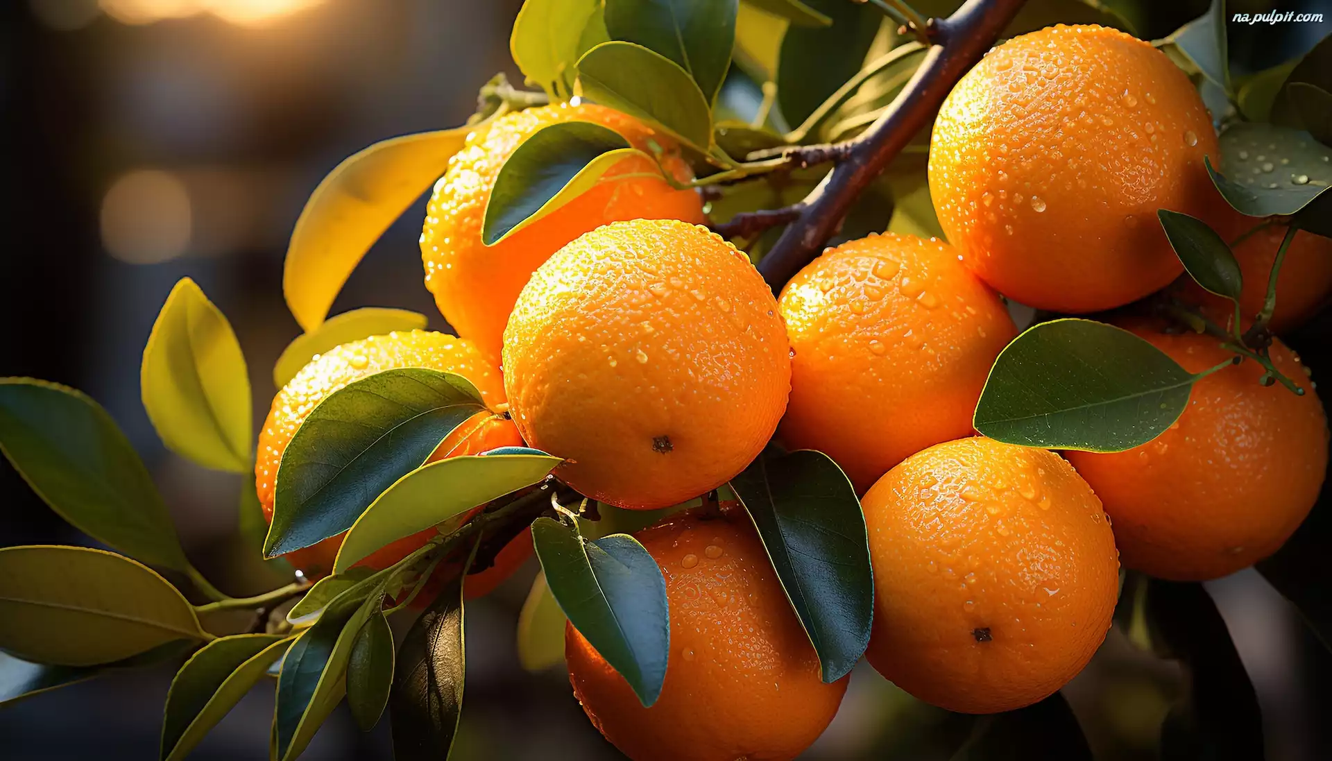 Owoce, Pomarańcze, Liście, Gałąź Na Pulpit