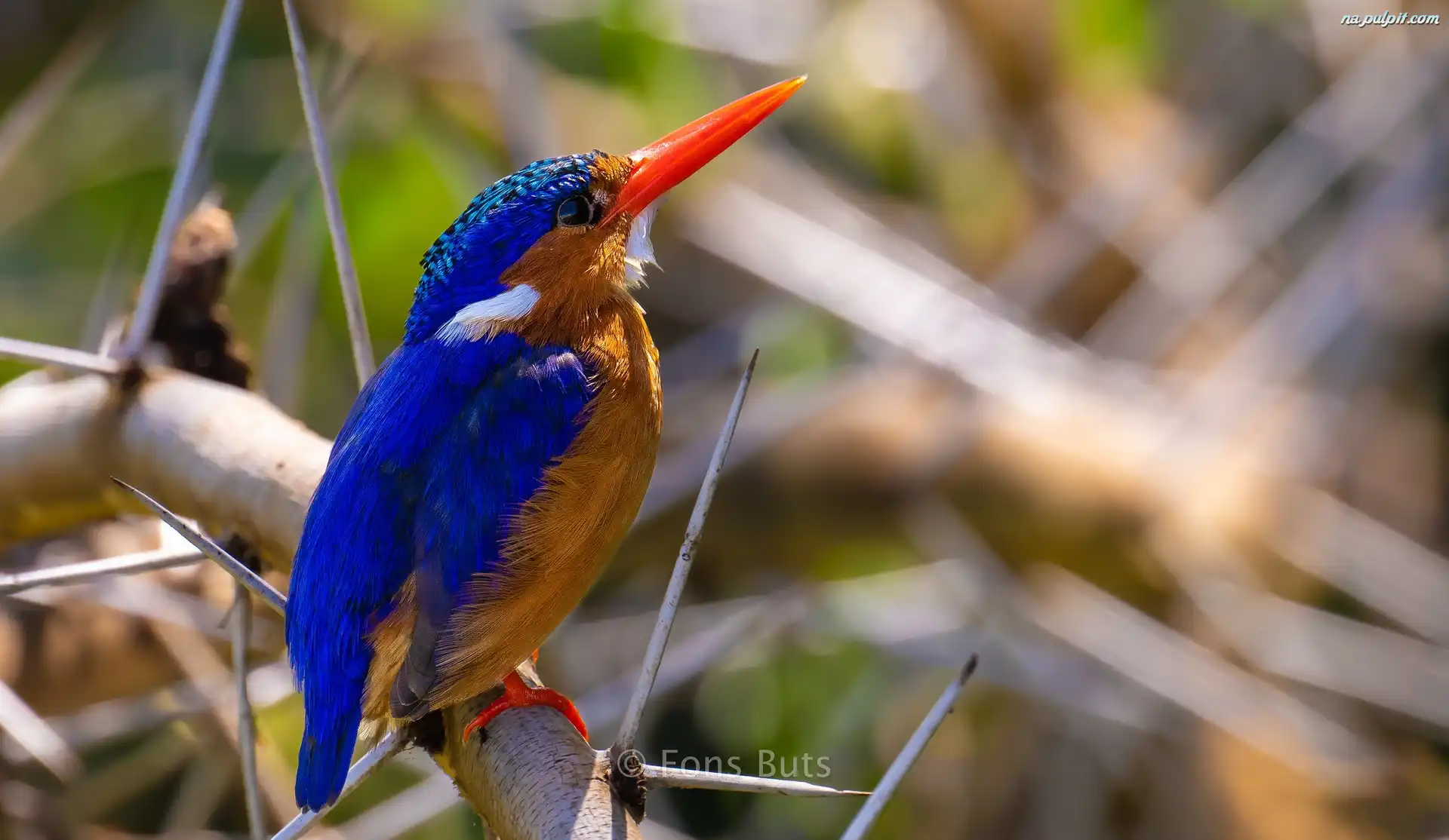 Zimorodek malachitowy, Ptak, Gałąź, Rozmyte tło Na Pulpit