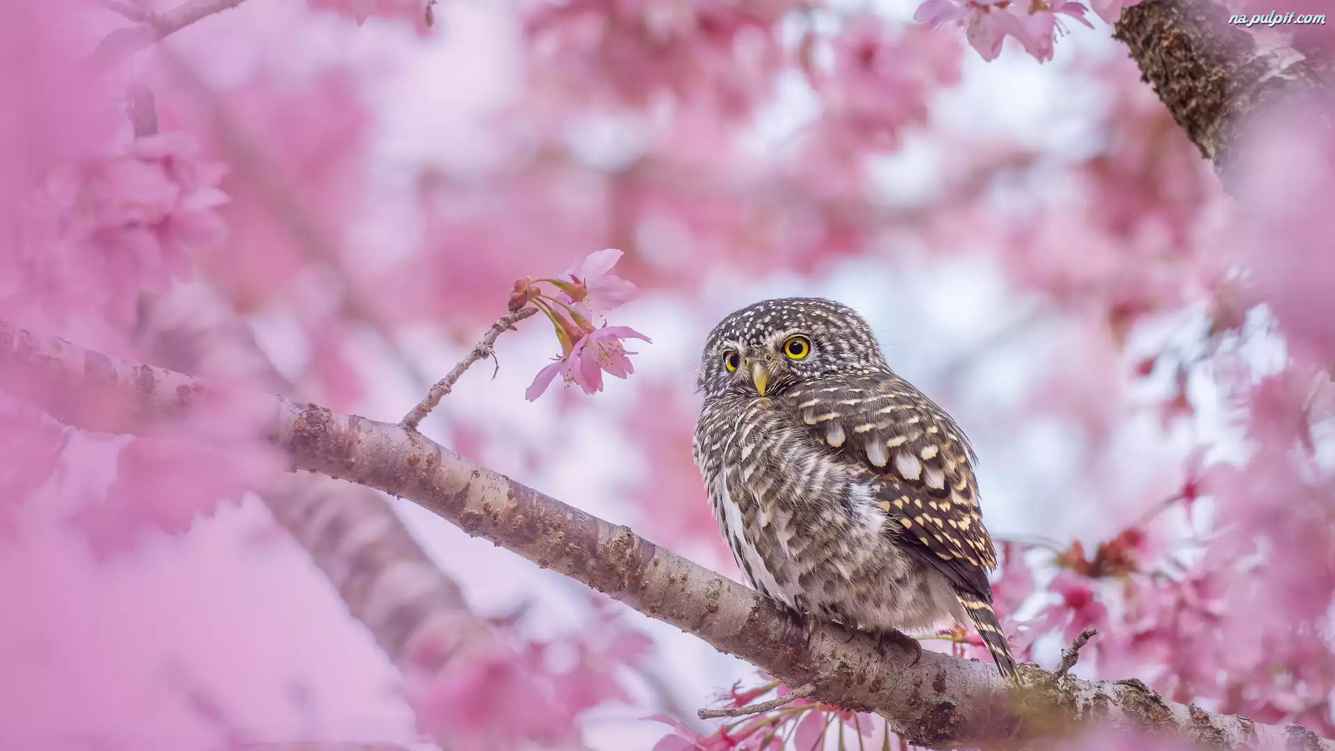 Kwiaty, Sowa, Ptak, Gałąź, Pójdźka, Wiosna Na Pulpit