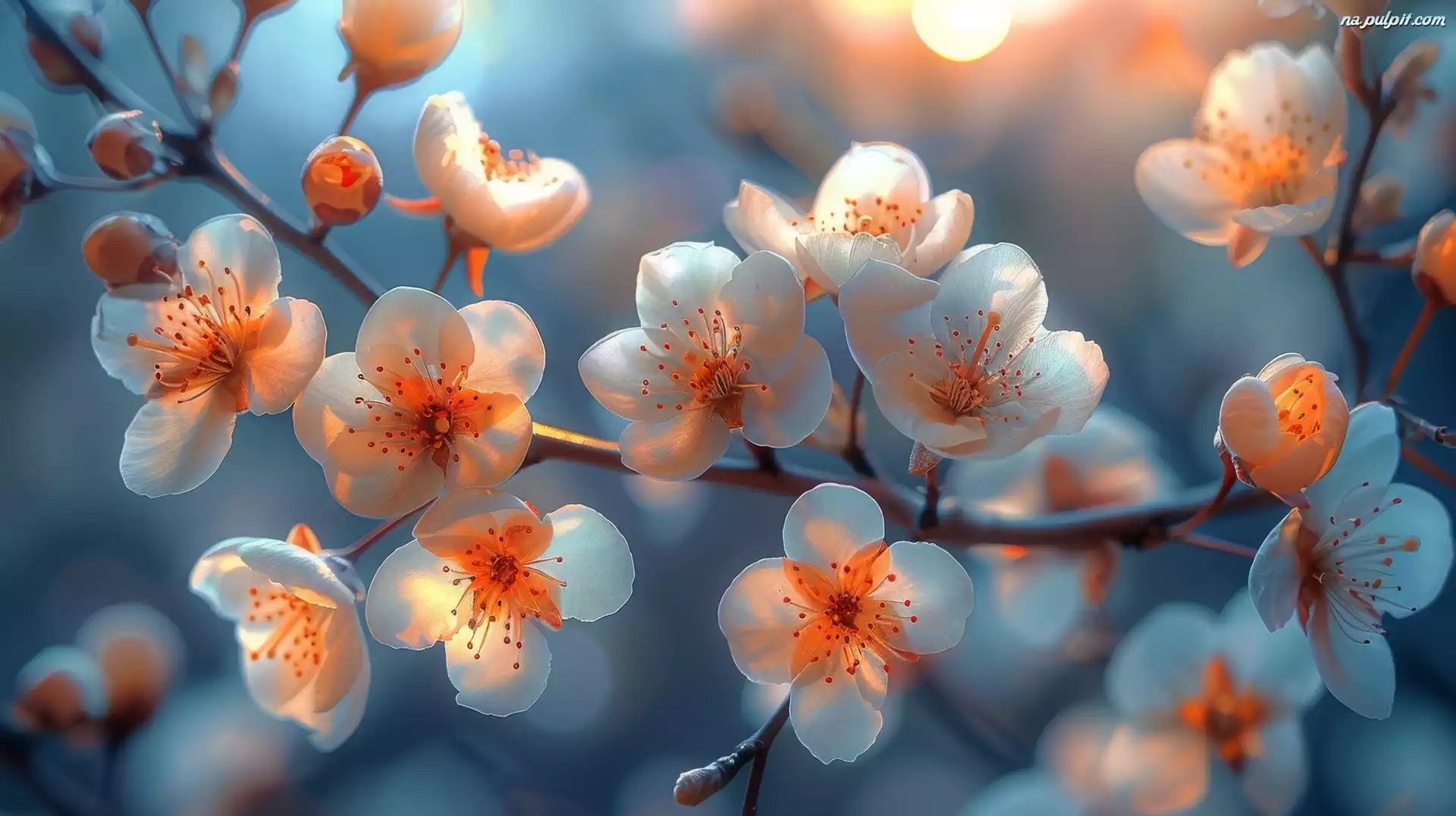 Kwiaty, Gałązka, Biało, Grafika, Pomarańczowe Na Pulpit