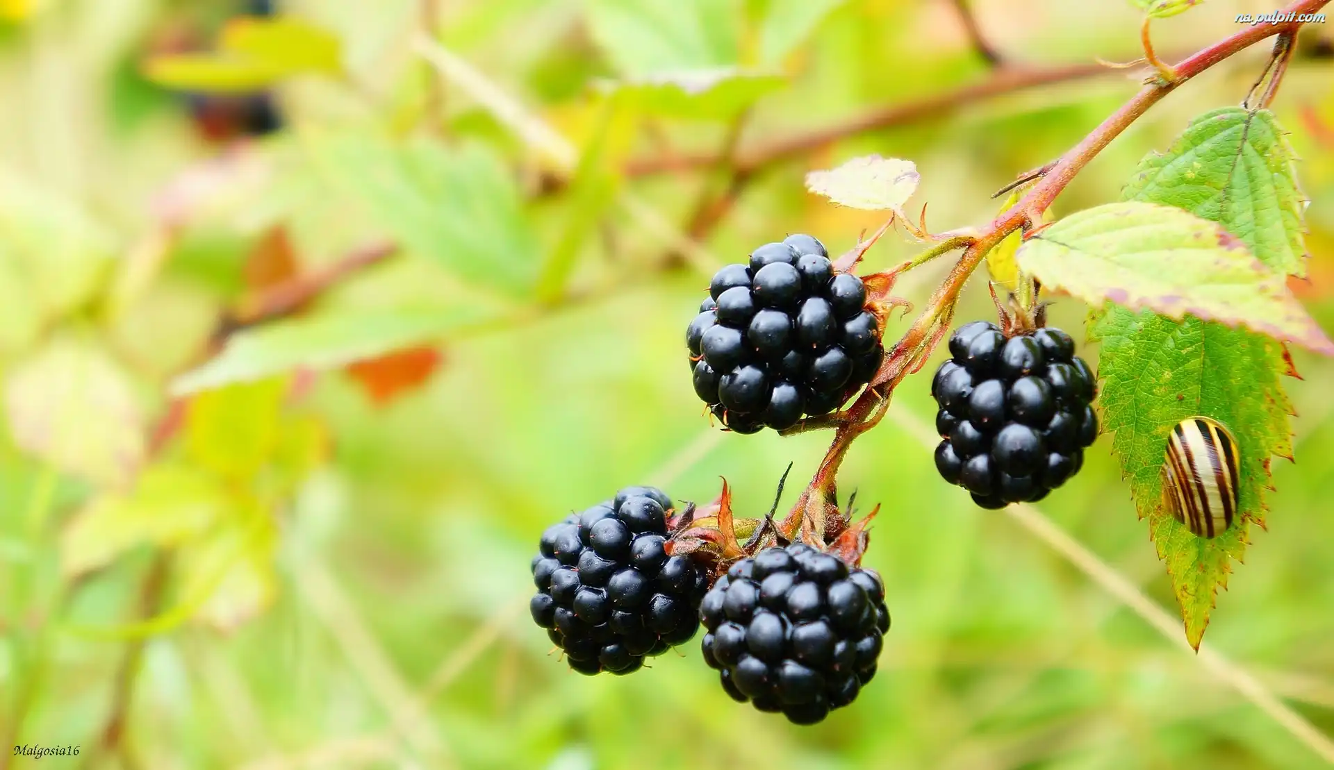 Ślimak, Dojrzałe, Owoce, Gałązka, Jeżyny