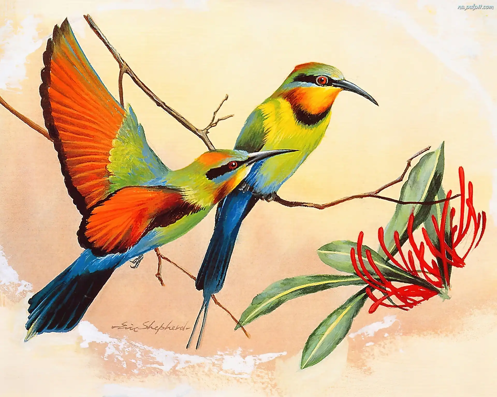 Gałązka, Kolorowe, Dwa, Ptaki Na Pulpit
