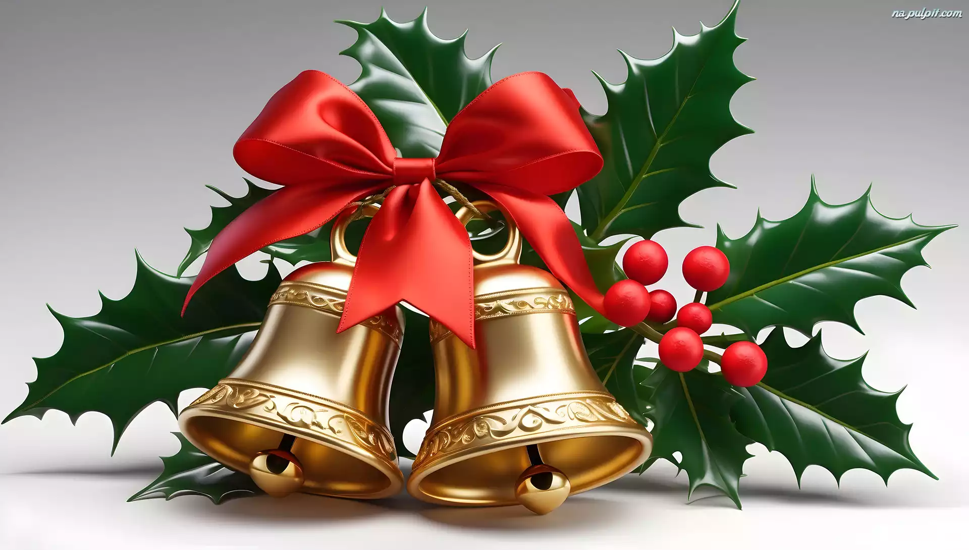 Ostrokrzew, Świąteczne, Dzwonki, Gałazka, Złote, Kokarda Na Pulpit