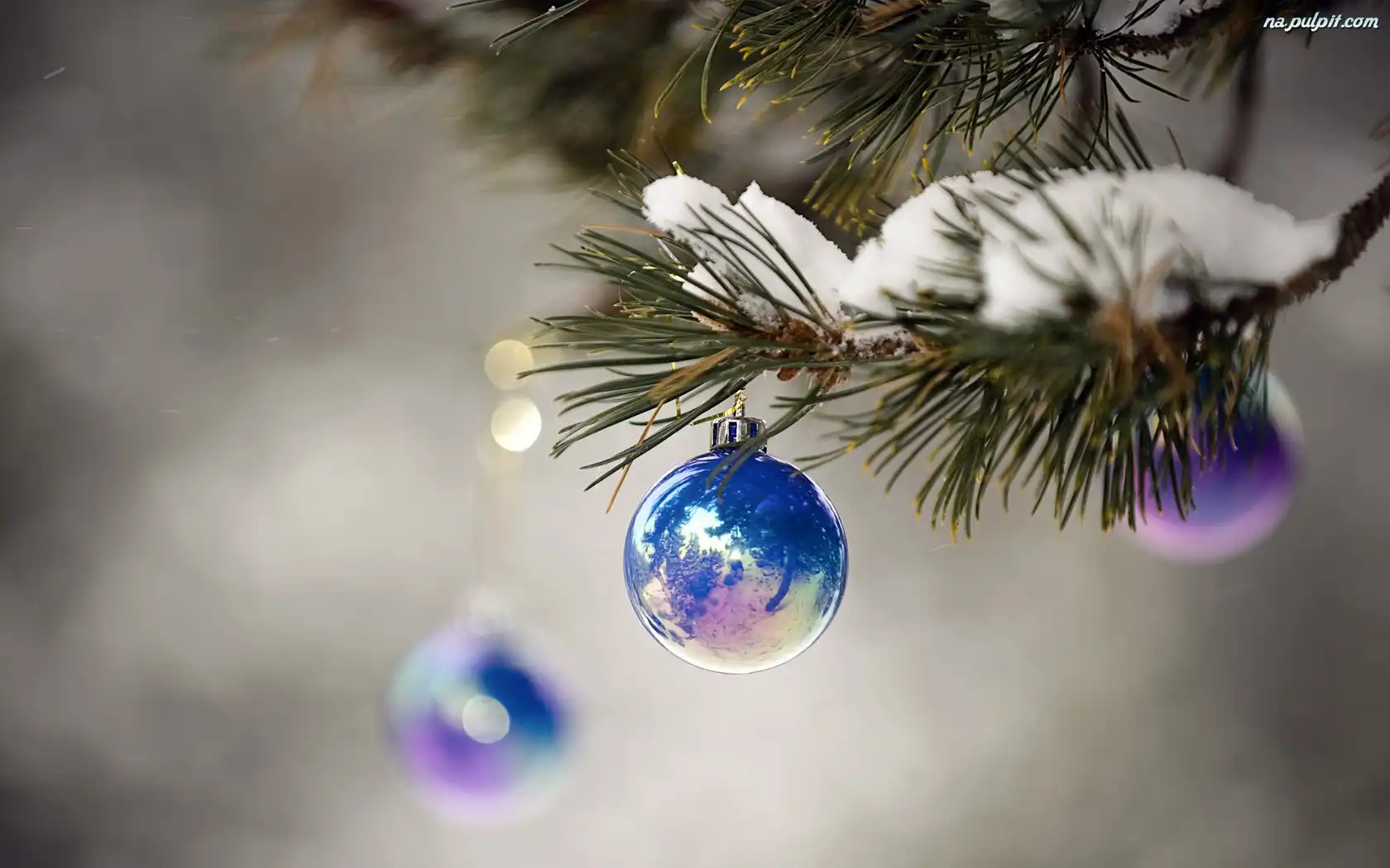 Śnieg, Gałązka, Bombki