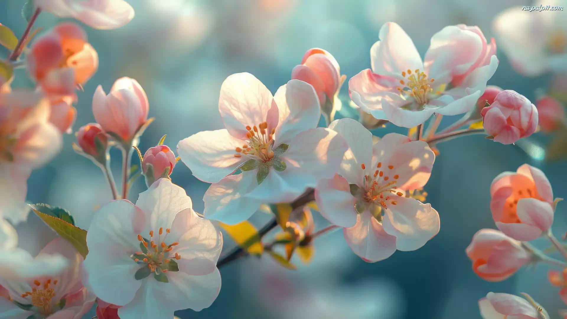 Jabłoń, Drzewo owocowe, Biało-różowe, Pąki, Kwiaty, Gałązka Na Pulpit