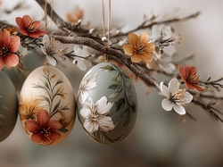 Kwiaty, Wielkanoc, Pisanki, Gałązka, Trzy, Grafika AI