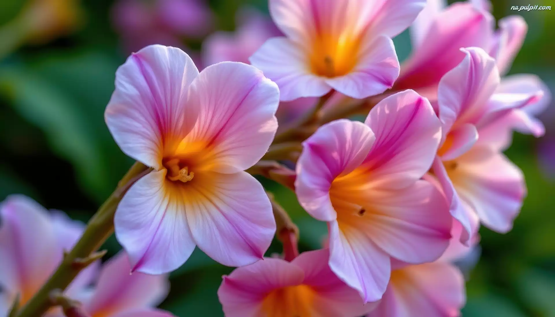 Zbliżenie, Różowe, Kwiaty, Gałązka