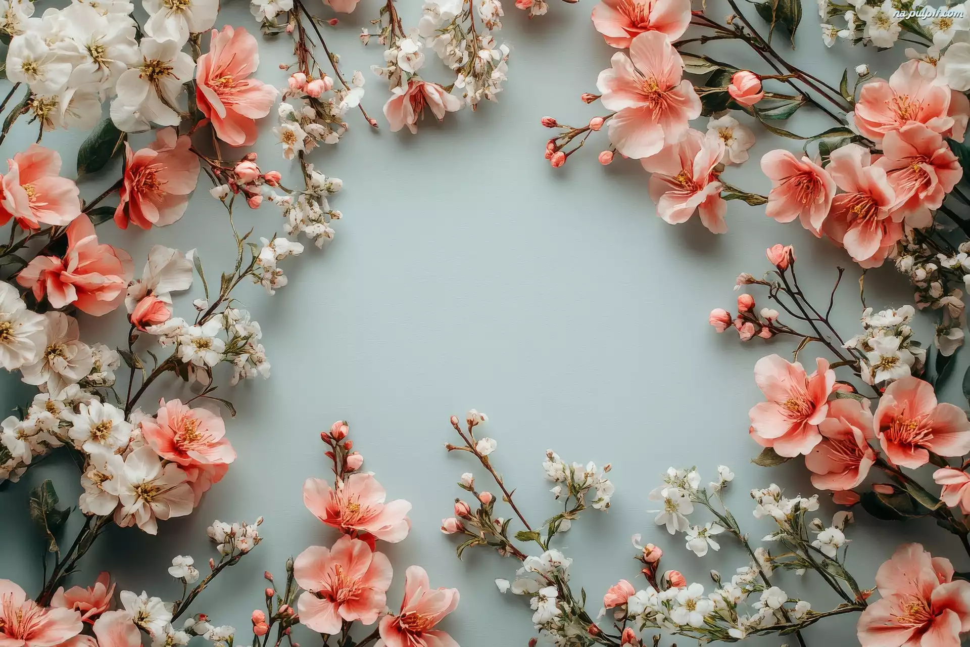 Białe, Różowe, Kwiaty, Gałązki Na Pulpit