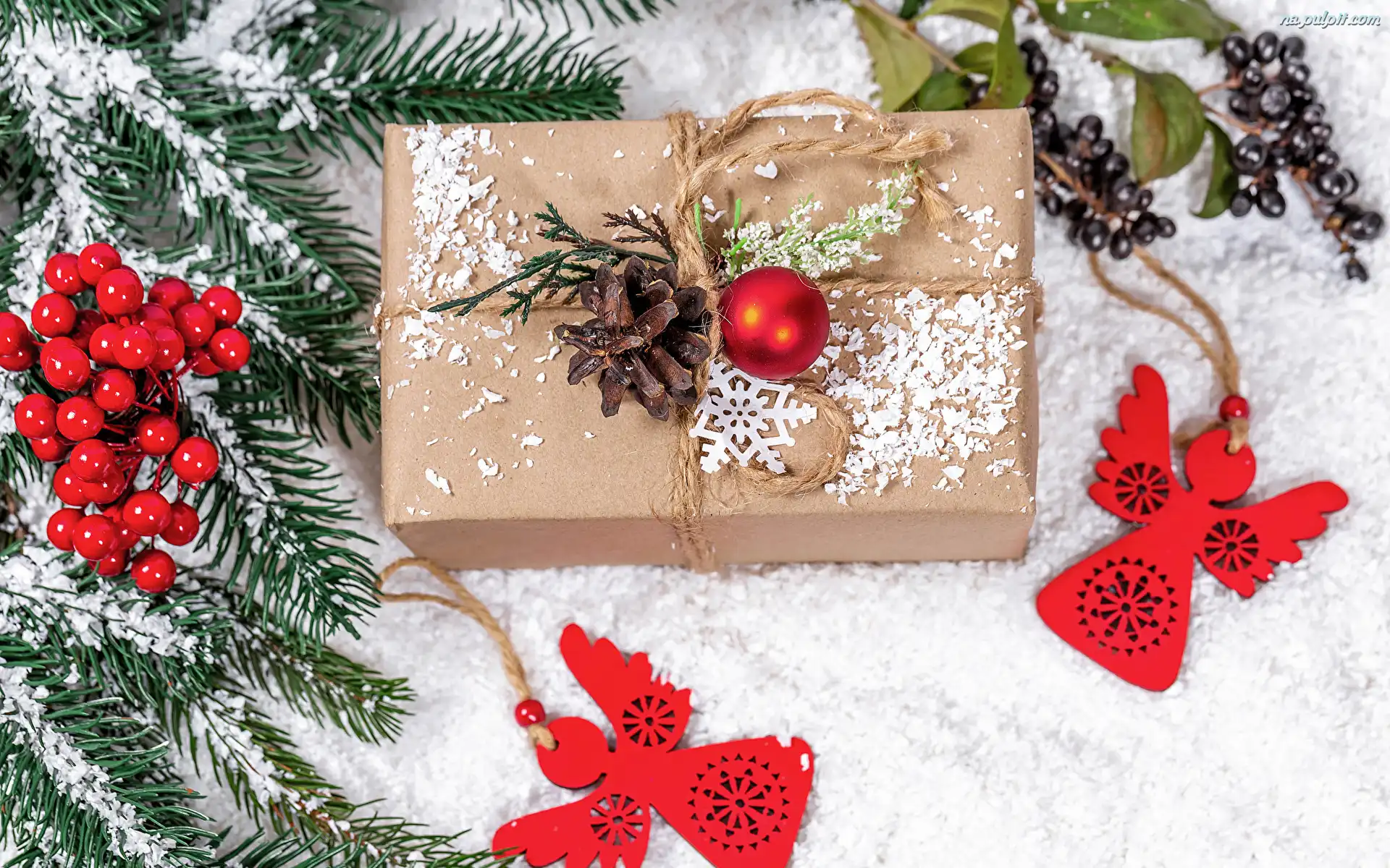 Bombki, Gałązki, Szyszki, Śnieg, Świerkowe, Prezent, Aniołki Na Pulpit