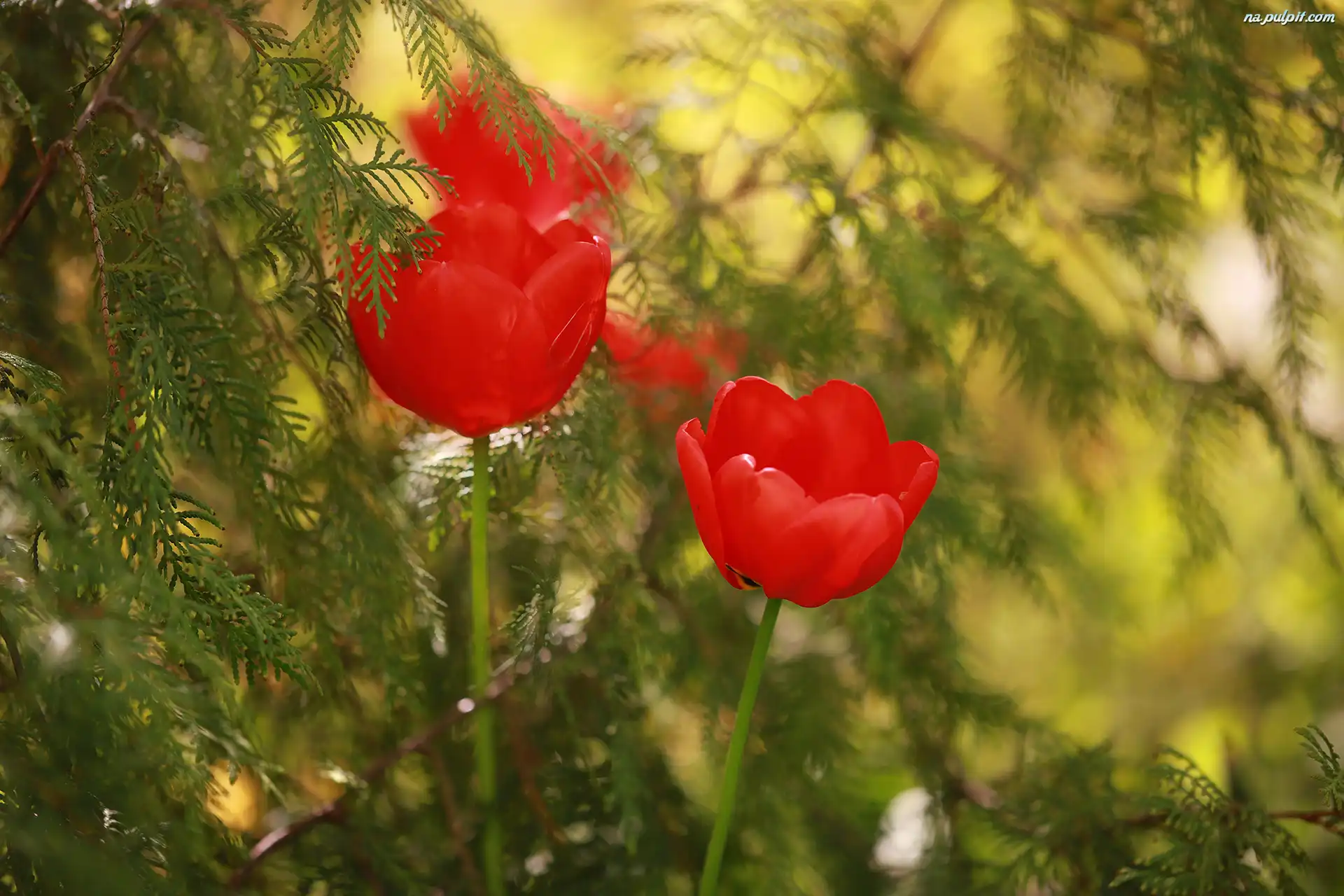 Czerwone, Tulipany, Rośliny, Gałązki Na Pulpit