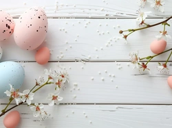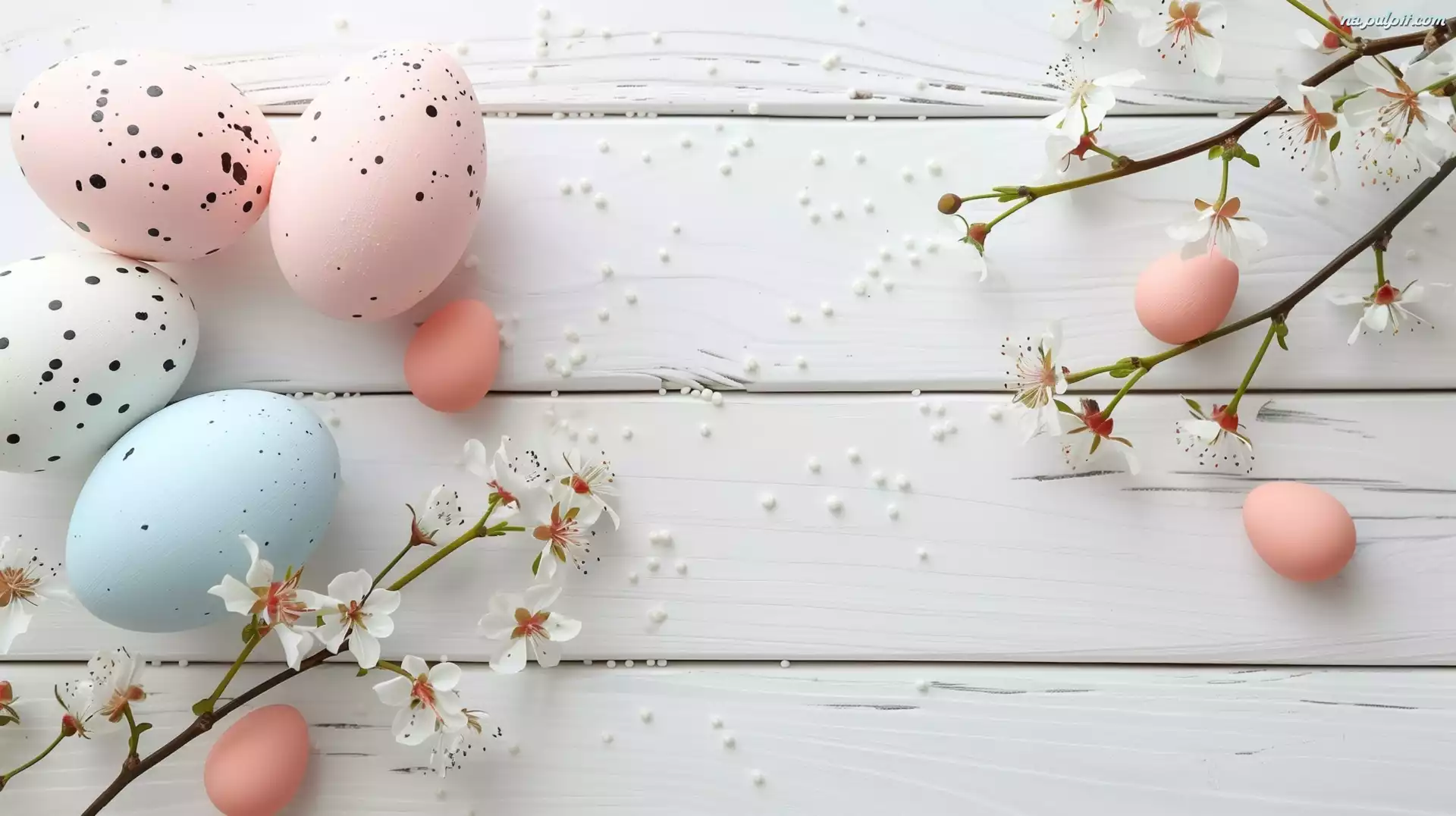 Białe, Wielkanoc, Jajka, Gałązki, Nakrapiane, Deski