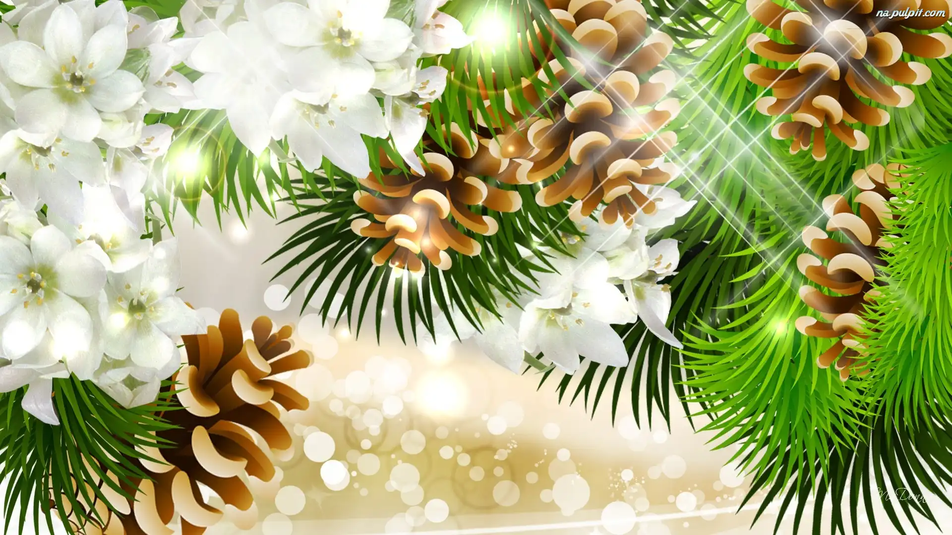 Grafika, Gałązki, Narodzenie, Szyszki, Iglaka, Kwiaty, Boże Na Pulpit