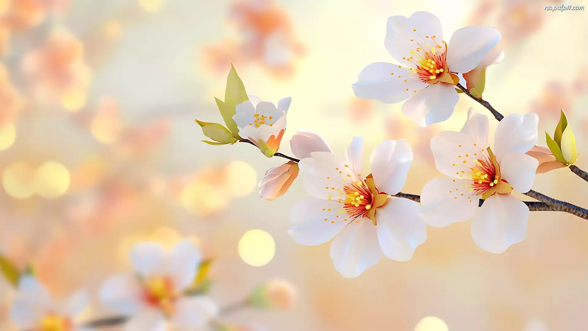 Białe, Drzewo owocowe, Gałązki, Listki, Kwiaty Na Pulpit