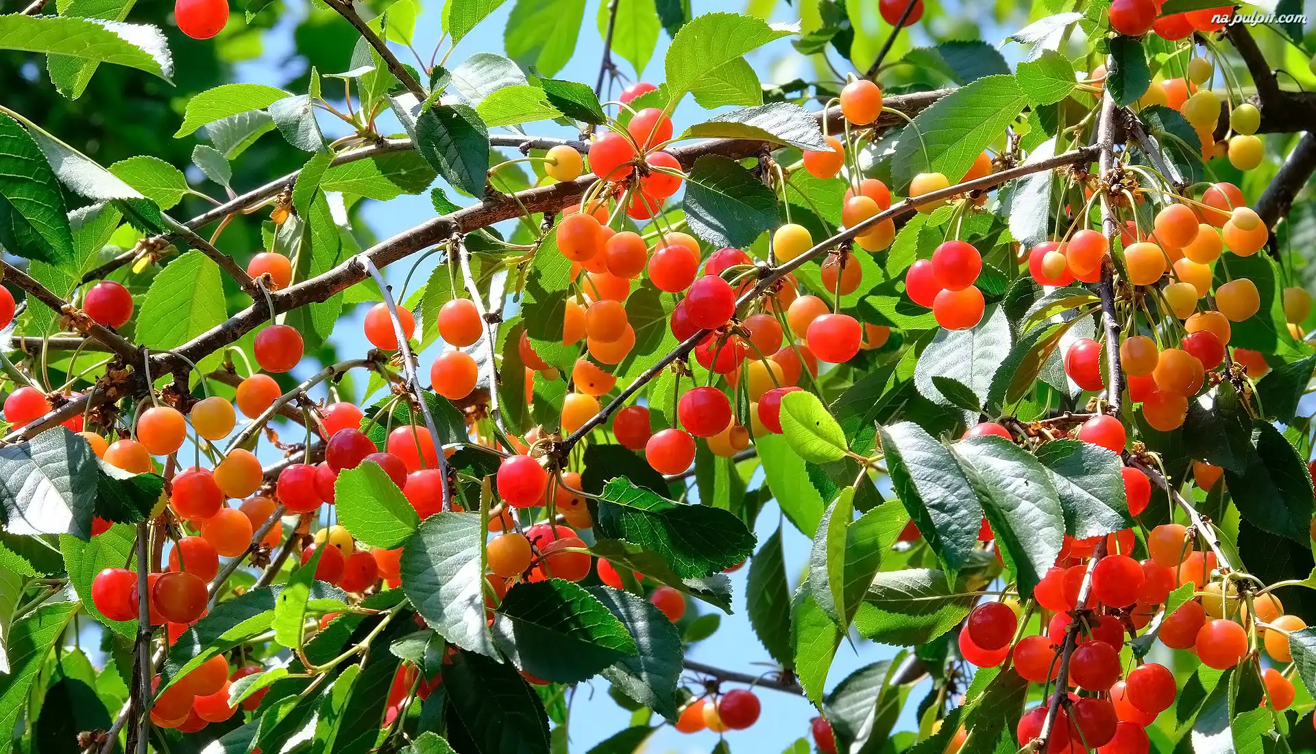 Gałązki, Wiśnie, Owoce, Liście Na Pulpit