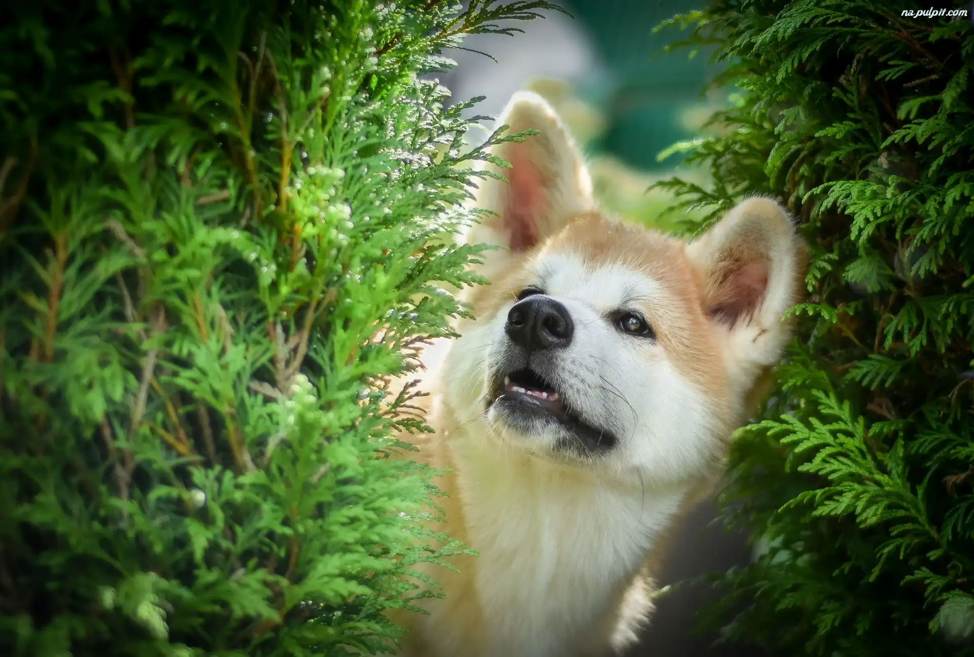 Gałązki, Akita inu, Pies, Zielone Na Pulpit