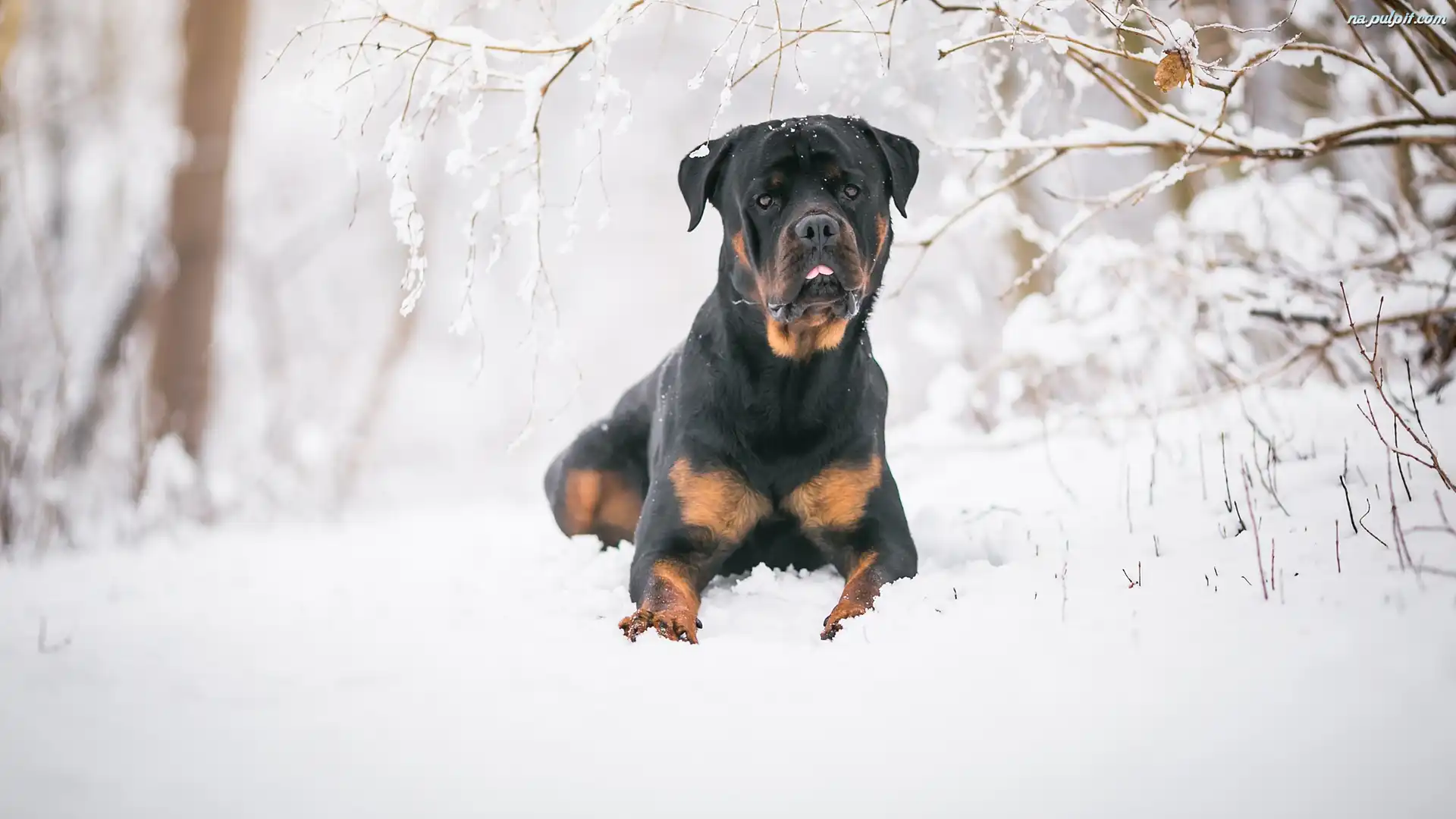 Gałązki, Rottweiler, Pies, Śnieg Na Pulpit