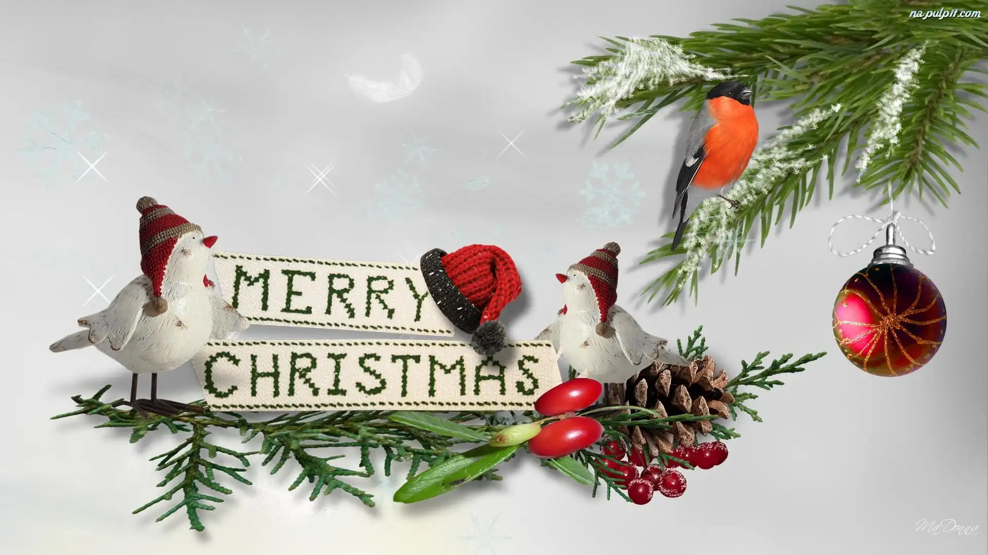 Świąteczna, Ptaszki, Bombki, Gałązki, Dekoracja