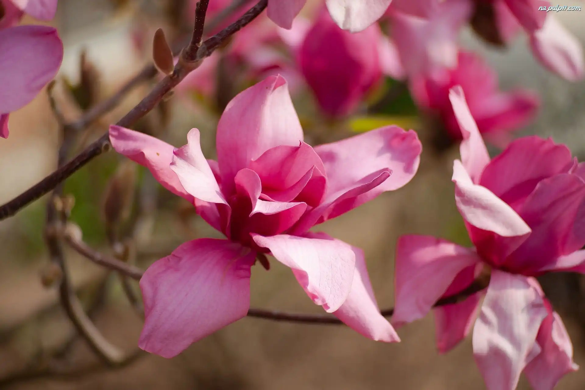 Gałązki, Rozwinięte, Różowe, Magnolie
