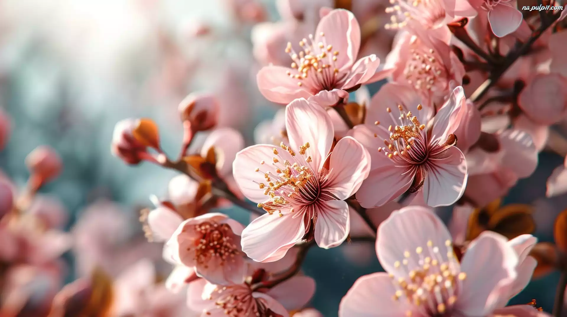 Różowe, Drzewo owocowe, Gałązki, Kwiaty, Rozwinięte Na Pulpit