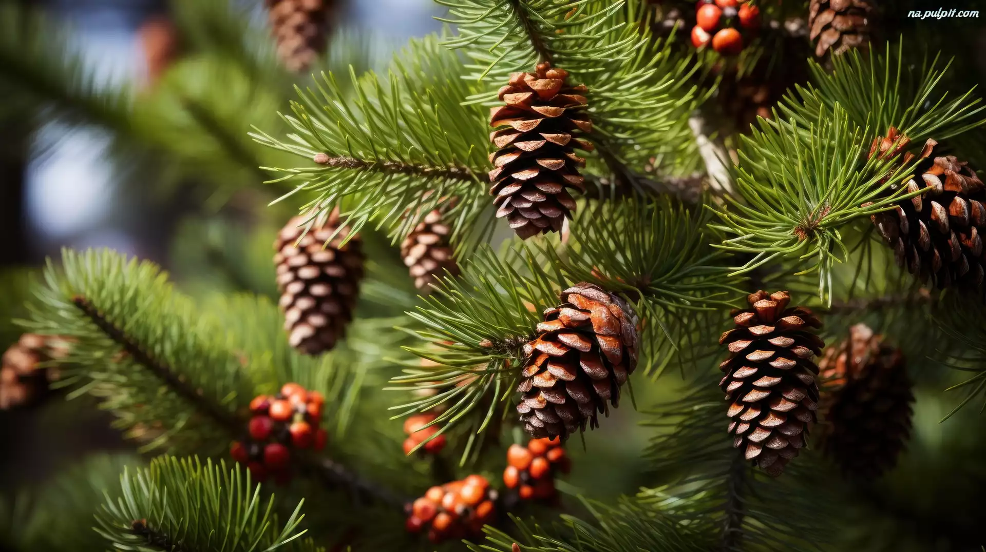 Szyszki, Gałązki, Sosna, Grafika AI Na Pulpit