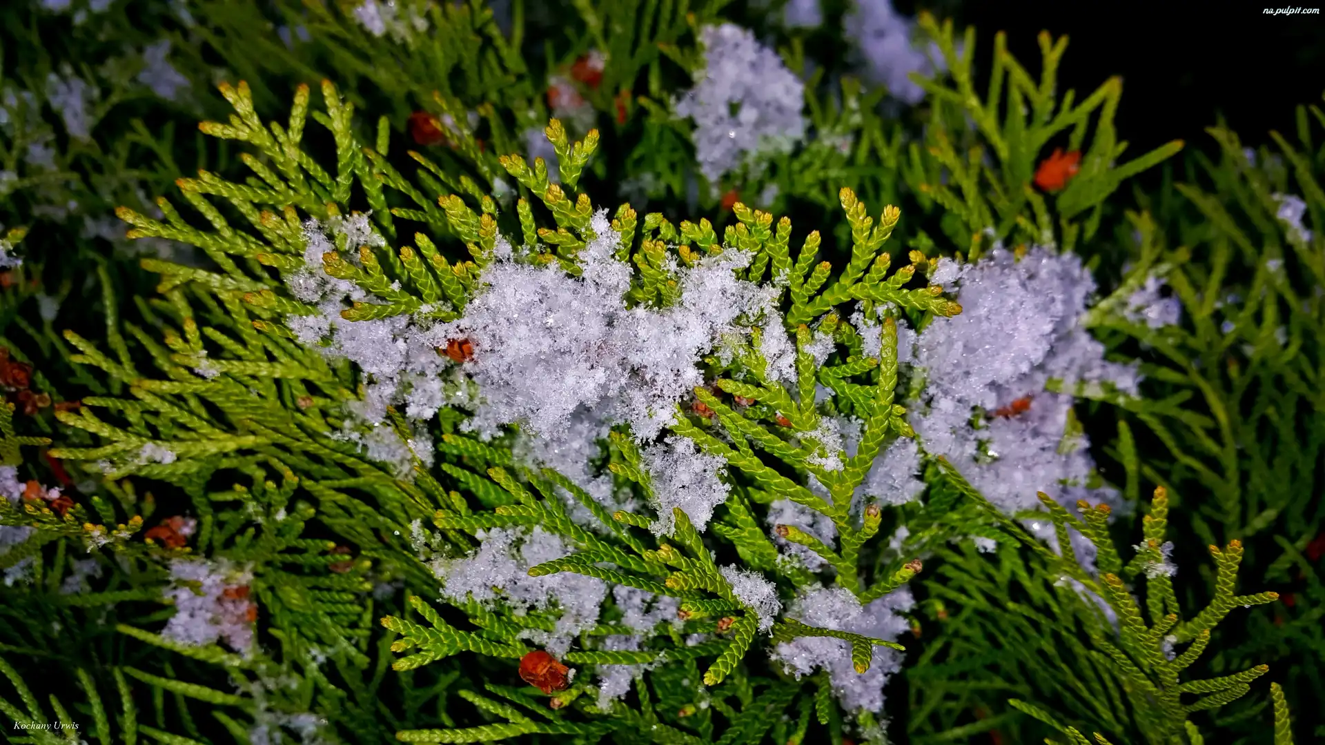 Śnieg, Tuja, Gałązki, Szmaragd Na Pulpit