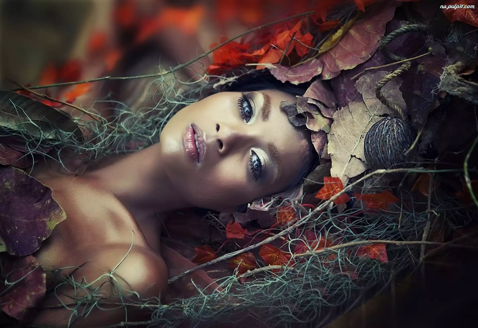 Gałęzie, Liście, Czerwone, Kobieta, Suche Na Pulpit