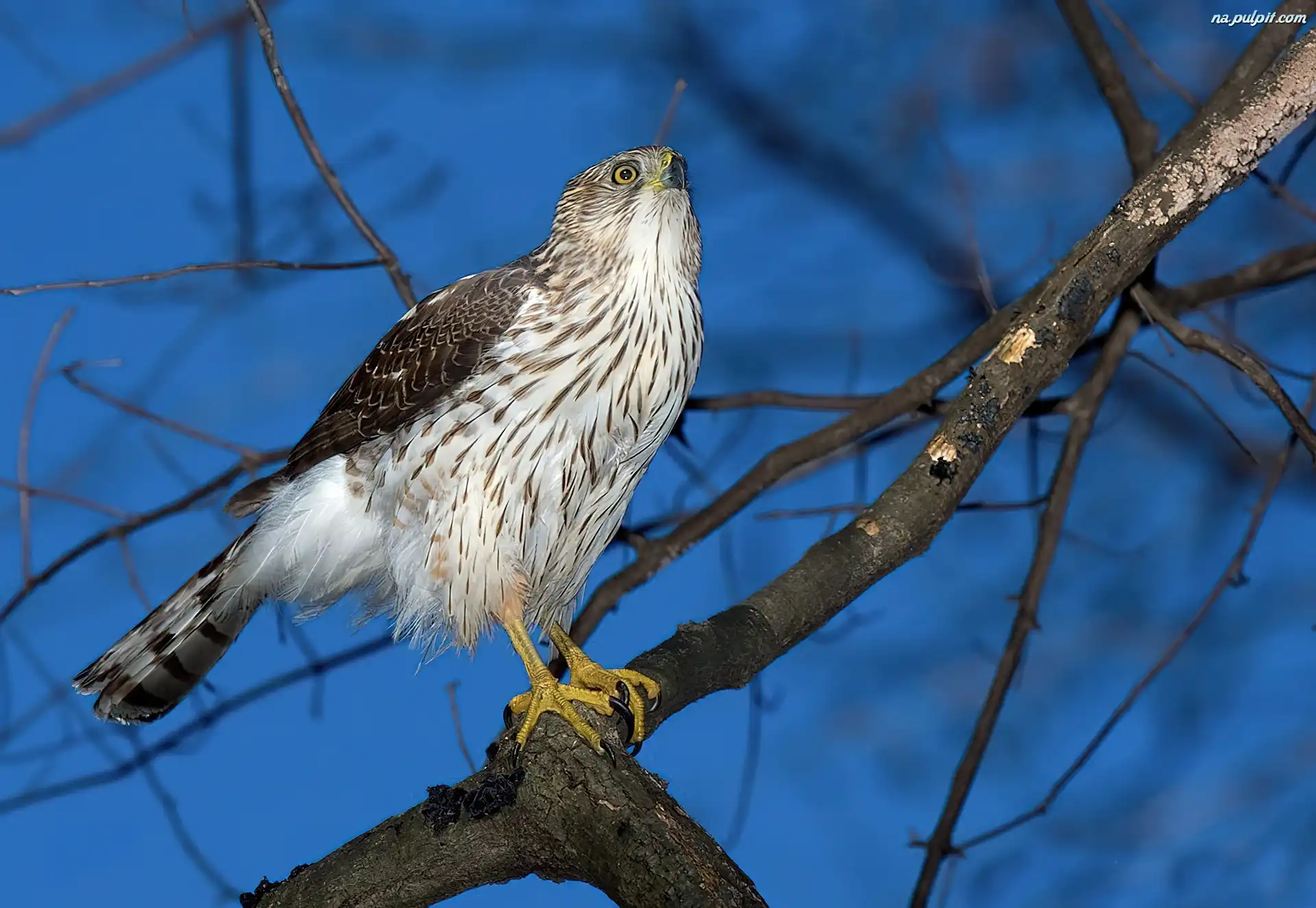 Gałęzie, Ptak, Krogulec Czarnołbisty Na Pulpit