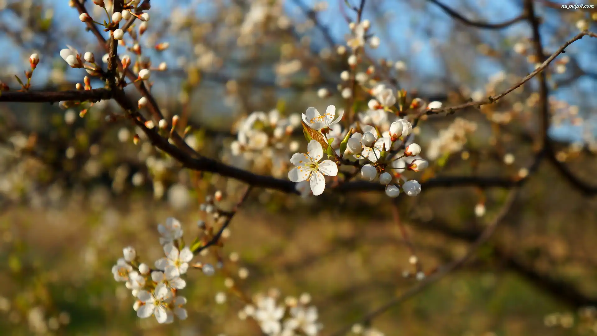 Gałęzie, Białe, Drzewo owocowe, Kwiaty Na Pulpit