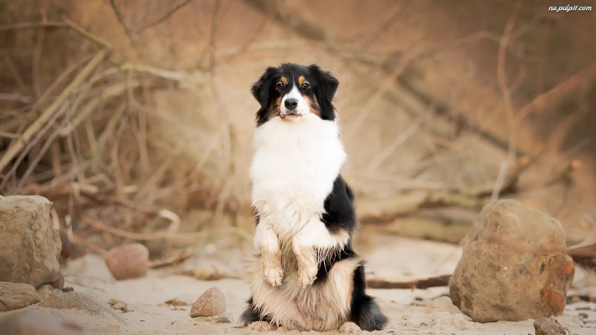 Gałęzie, Owczarek australijski, Pies, Kamienie Na Pulpit