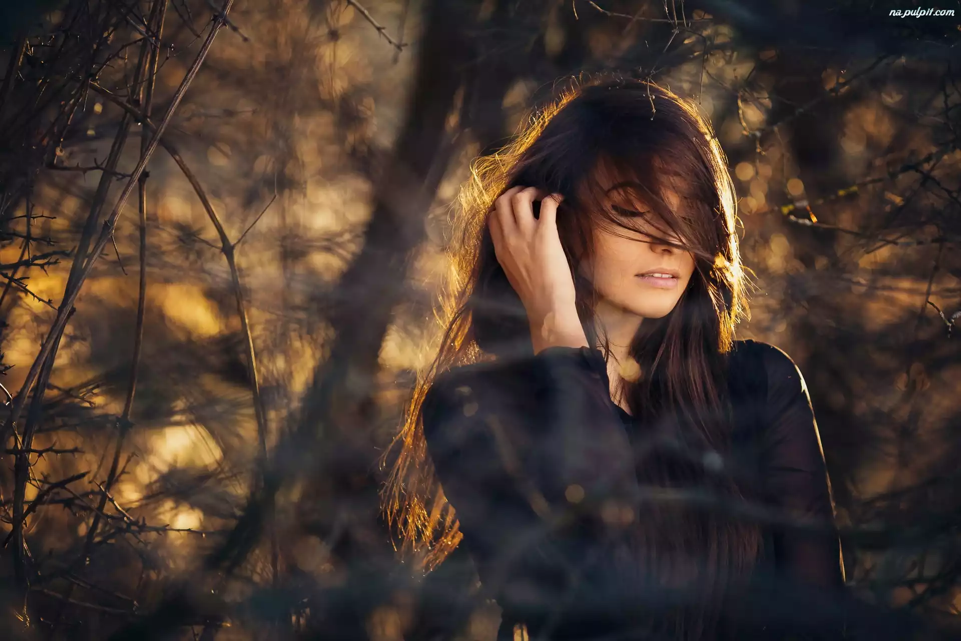Gałęzie, Przebijające, Dziewczyna, Romantyczna, Światło