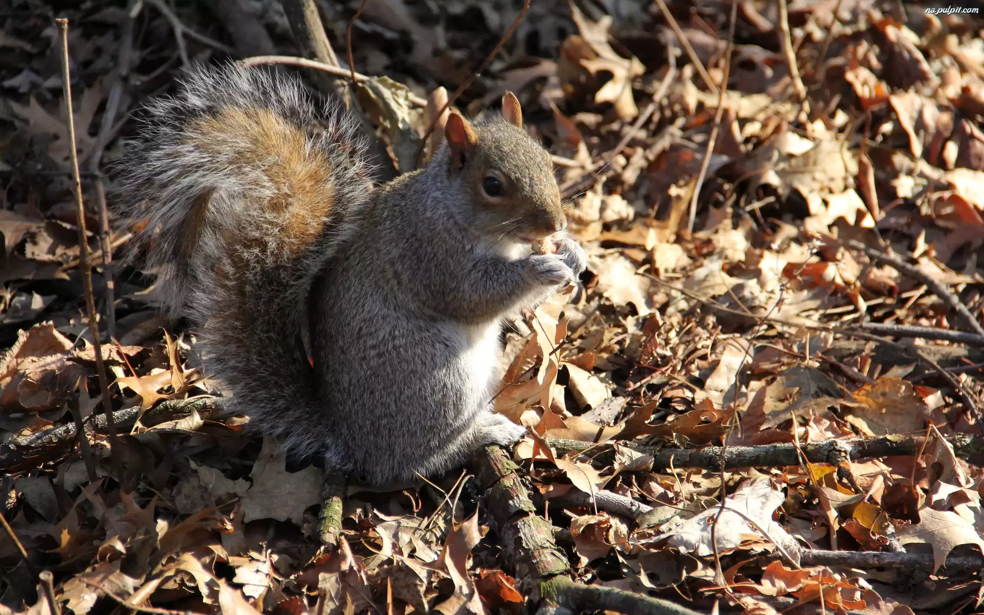 Wiewiórka, Gałęzie, Liście Na Pulpit