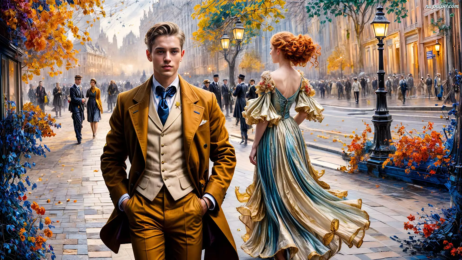 Ulica, Rudowłosa, Mężczyzna, Garnitur, Kobieta, Grafika Na Pulpit