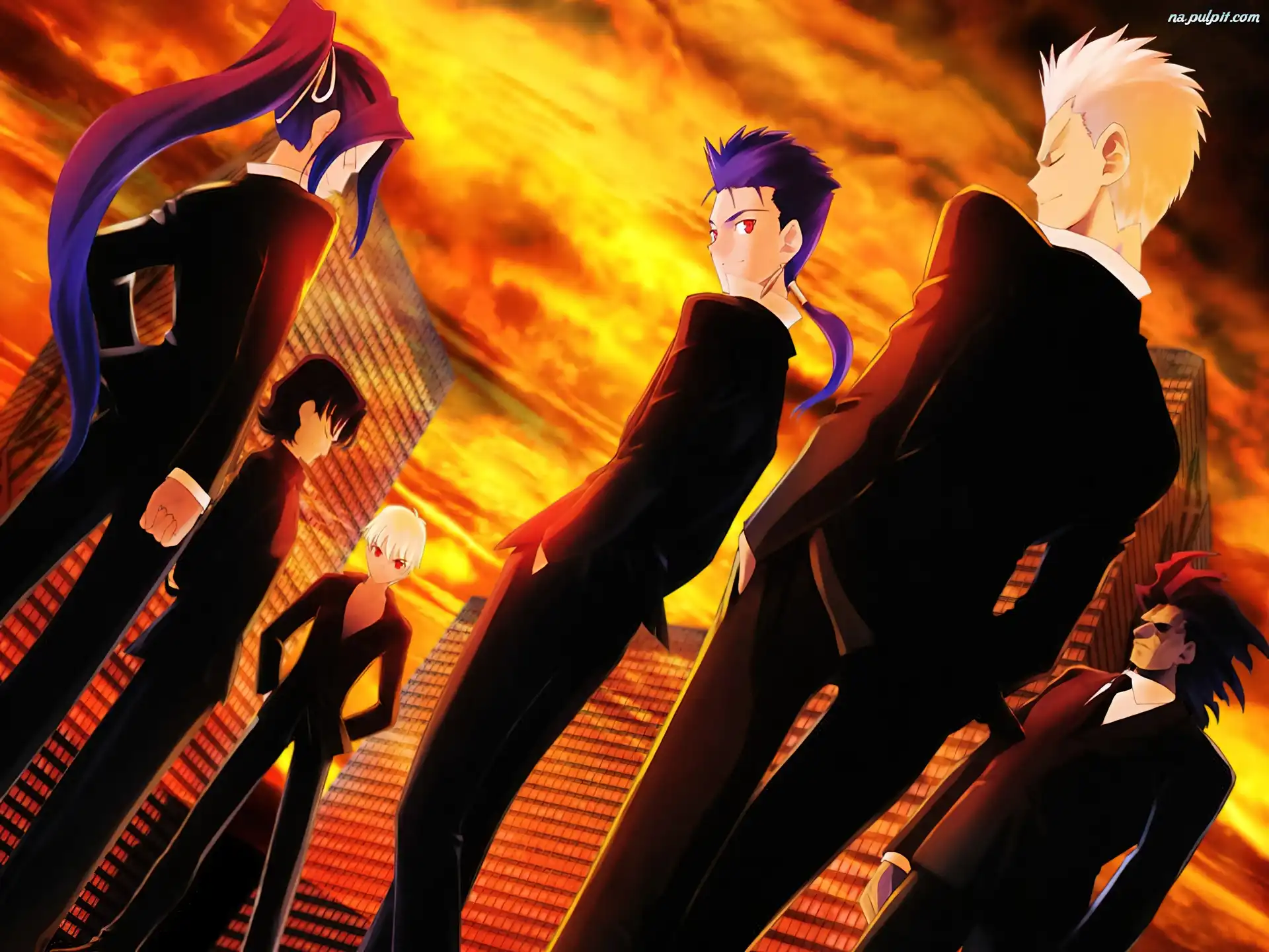 garnitury, wieżowce, Fate Stay Night, ludzie Na Pulpit