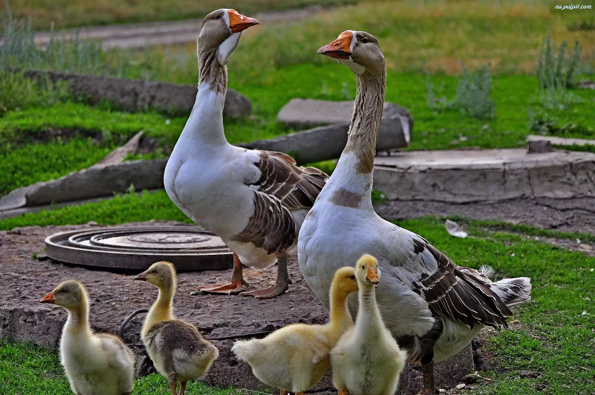 Gąsiątka, Gęsi, Dorosłe, Małe Na Pulpit