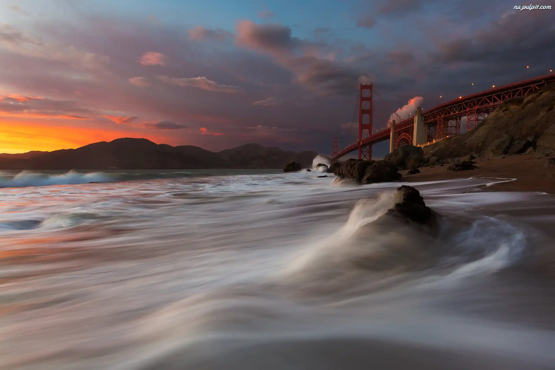 Golden Gate, Słońca, San Francisco, Morze, Most, Zachód Na Pulpit