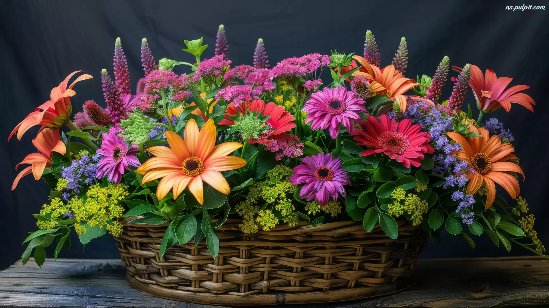 Łubin, Bukiet, Kwiaty, Gerbery, Kolorowe, Koszyk Na Pulpit