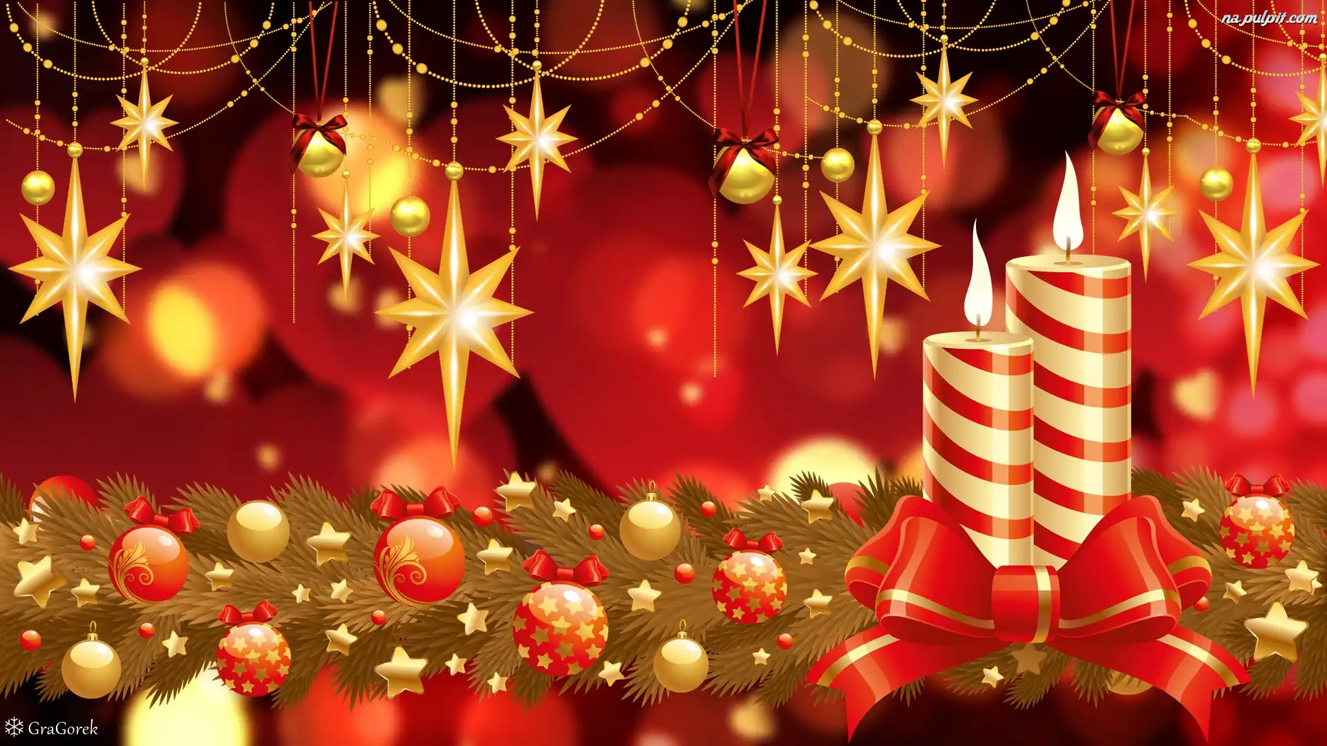 Grafika, Girlanda, Święta, Stroik, Świece, Gwiazdy, Boże Narodzenie Na Pulpit