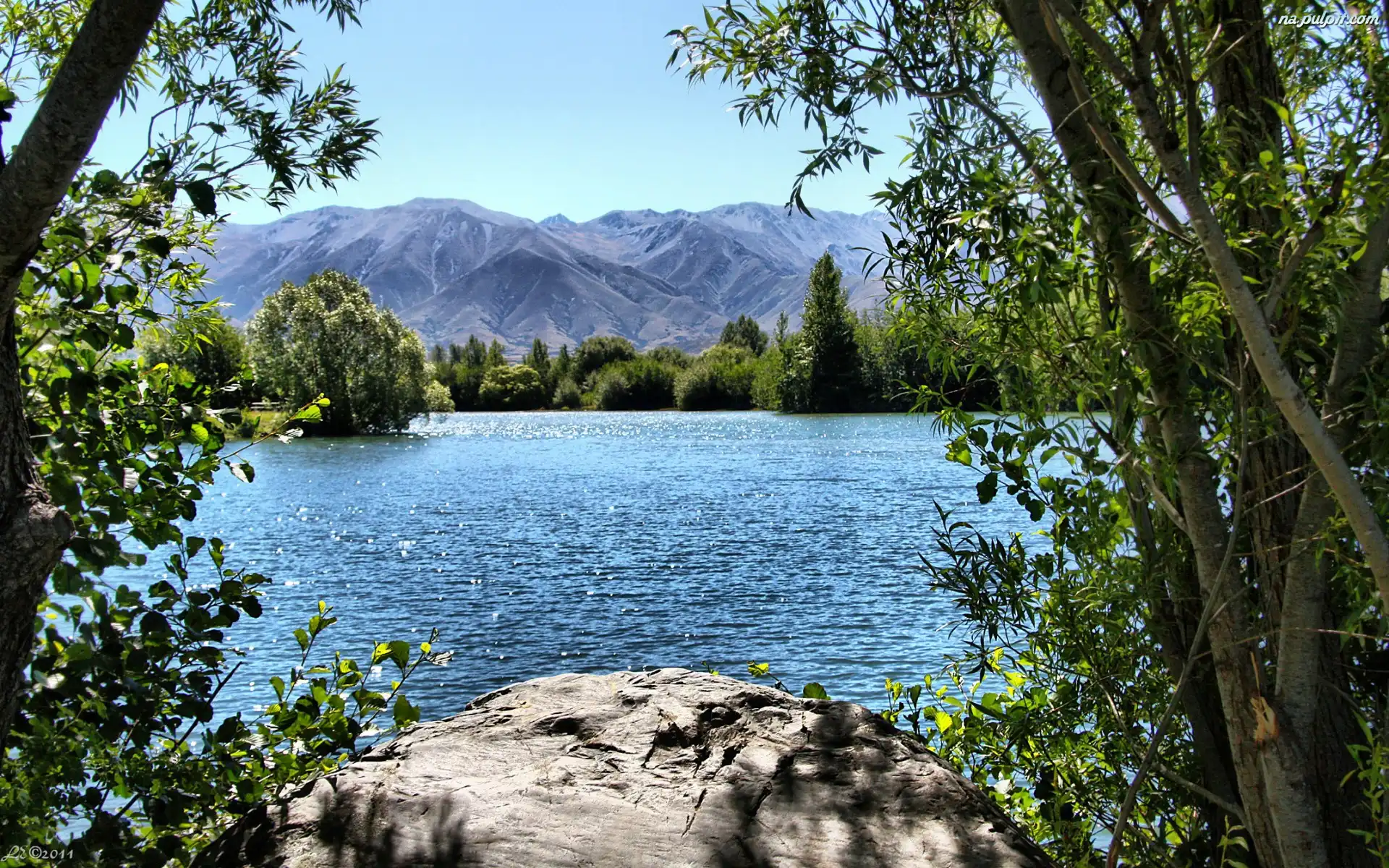 Głaz, Jezioro, Góry, Drzewa Na Pulpit