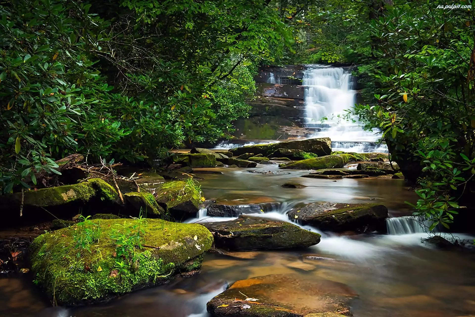 Głazy, Kaskada, Strumyk, Las, Omszałe Na Pulpit
