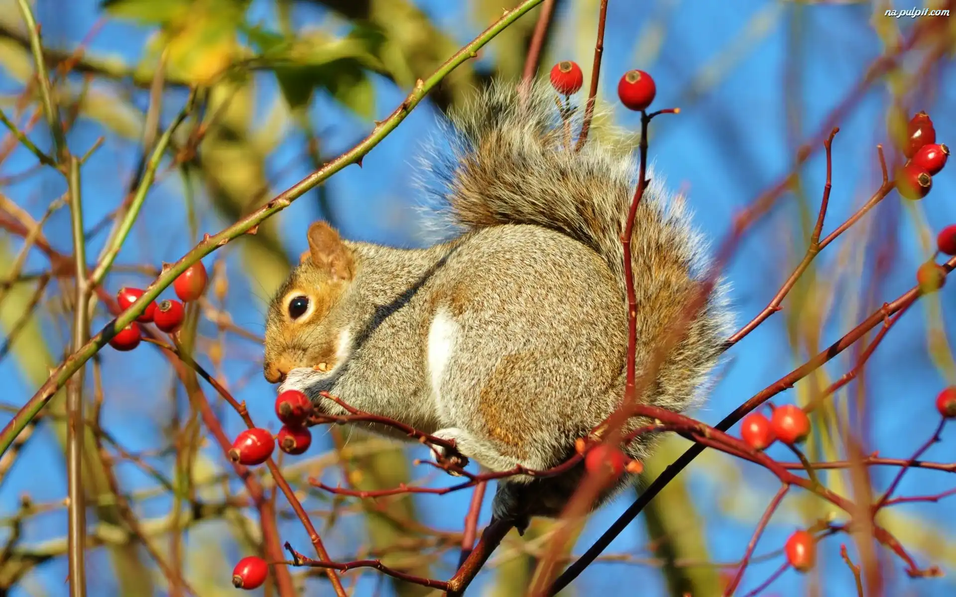 Głogu, Gałązki, Wiewiórka, Owoce Na Pulpit